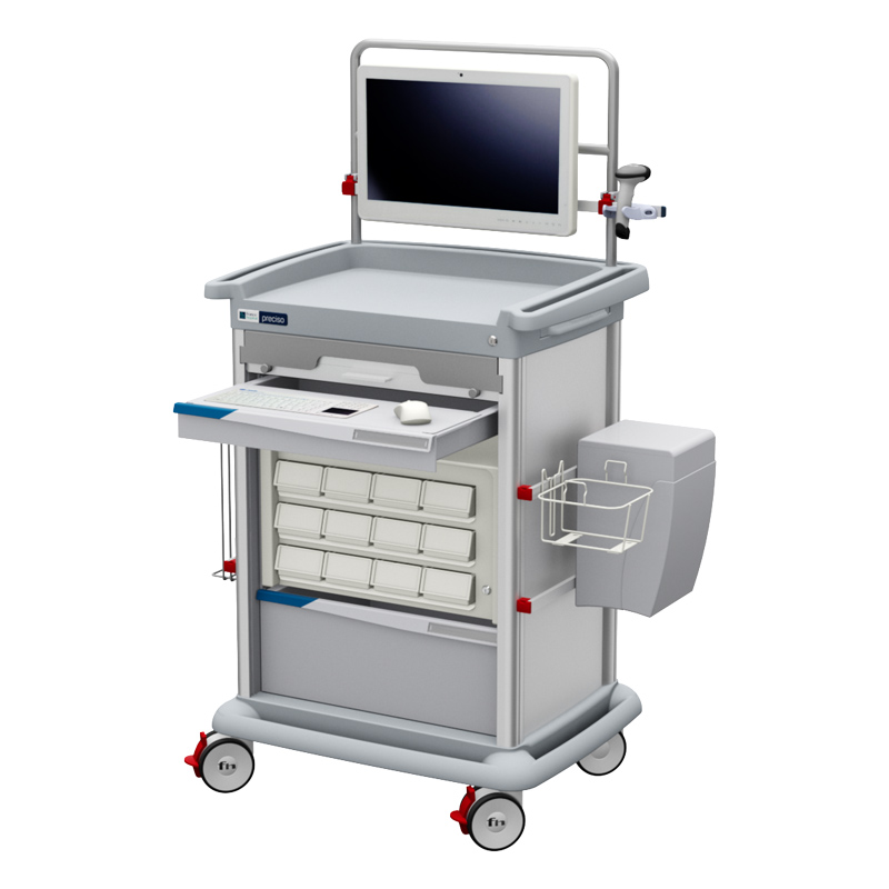 Carrelli ospedalieri che combinano attività infermieristiche (medicazione, somministrazione della terapia, gestione della cartella clinica, etc.) con capacità informatiche (interazione con la cartella clinica informatizzata, conferme di somministrazioni di farmaci o trattamenti, visualizzazione e modifica di prescrizioni, etc.).