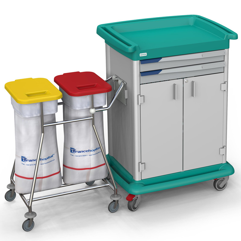 Carrello multifunzione per l’igiene del paziente e la biancheria pulita.